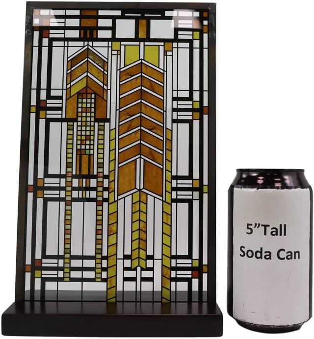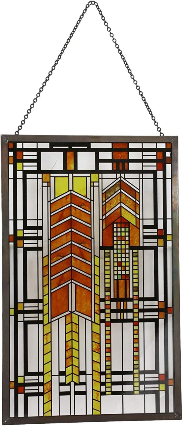 【Ebros Frank Lloyd Wright Autumn Sumac Stained Glass Art Metal Framed Hanging Wall Decor Or Desktop Plaque Susan Lawrence Dana House Window Architectural Home or Office Decorative Accent 10" by 6.5"】
