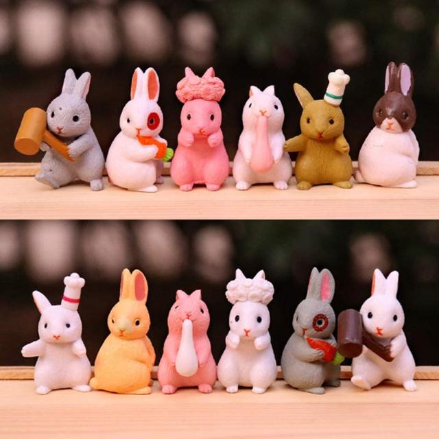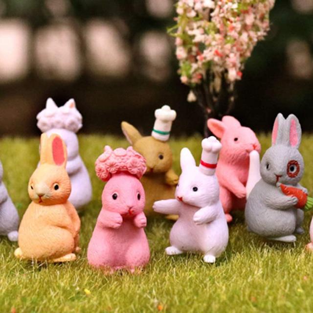 【Adorable Mini Bunny Figurines Easter Rabbit Cake Cupcake Toppers PartyDecoration Rabbit Miniature for Kids Craft Playset Fun Office】