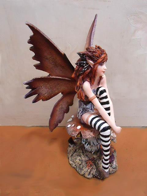【茸の上に座っている、いたずら好きな茶色の妖精 フェアリー彫像 彫刻 ファンタジー エイミー・ブラウン作 贈り物(輸入品)】