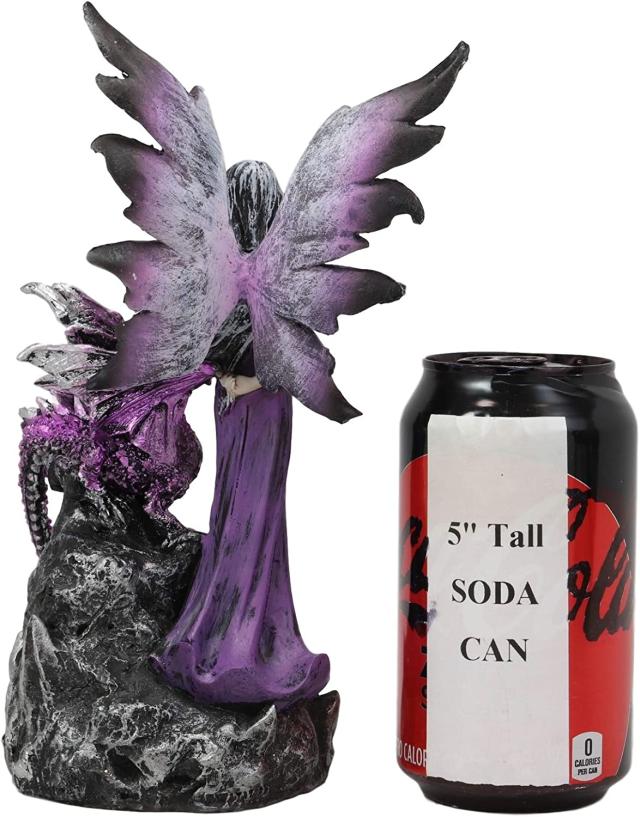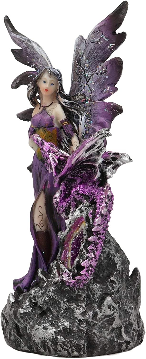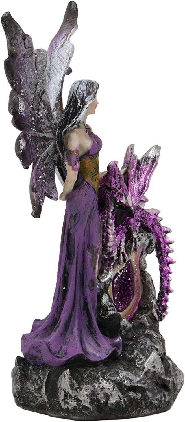 【Ebros Beautiful Purple Fairy with Dragon Sitting On LED Crystal GeodeNight Light Statue Decorative Mythical Fantasy Forest Magic Figurine CollectibleMedieval Fairies Dungeons and Dragons Decor】
