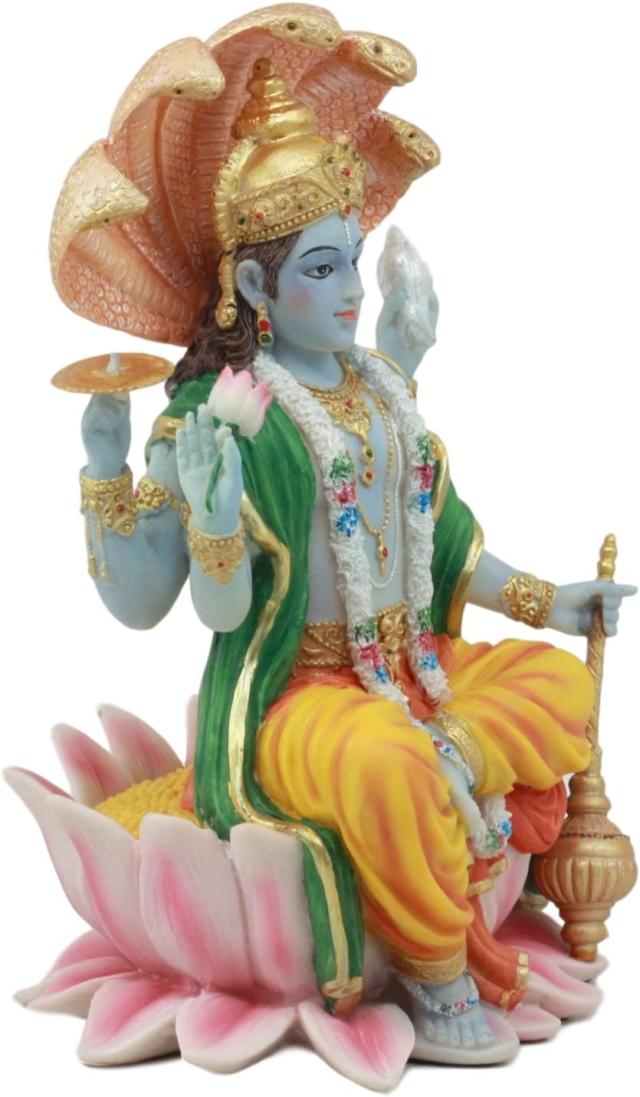 【Ebros Gift Hindu God Vishnu Vasudeva Sitting On Throne of Cobras StatuePreserver and Protector Blue Avatar Figurine Eastern Enlightenment HinduismReligion Sculpture】