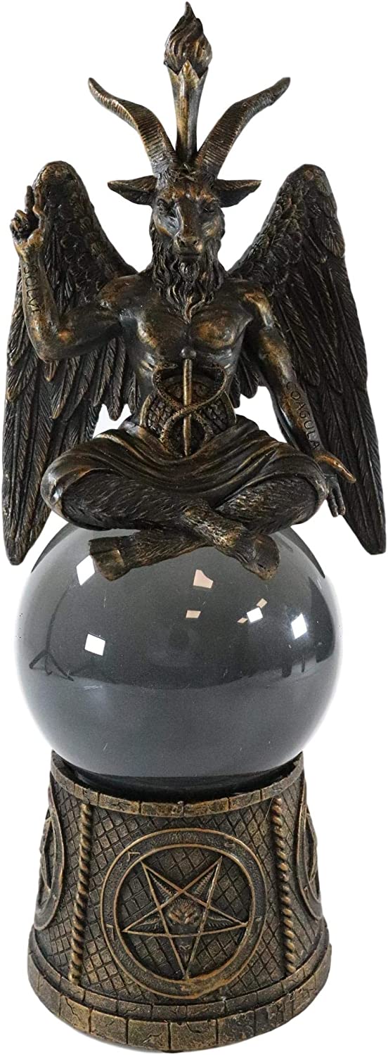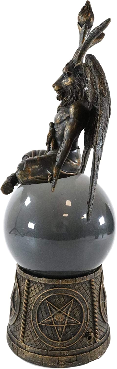 【Ebros Sabbatic Goat of Mendes Lucifer Samael Lilith Baphomet SittingOn Black Sandstorm Gazing Ball with Pentagram Sigils Decorative Statue12" Tall LaVeyan Satanic Devil Cult Worship Scrying Balls】
