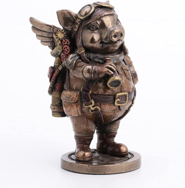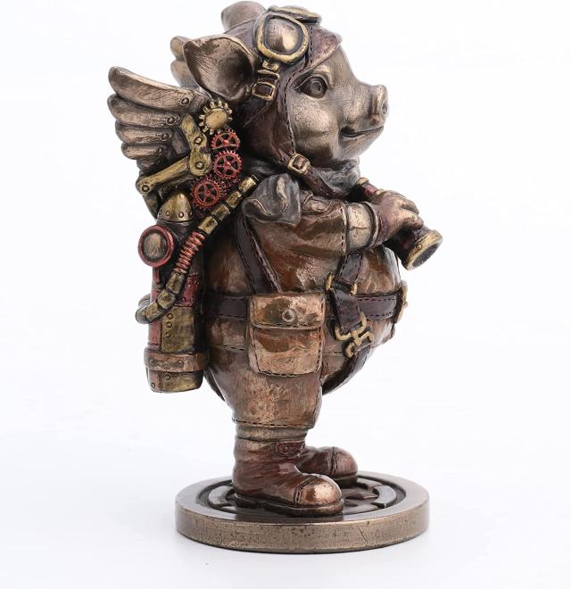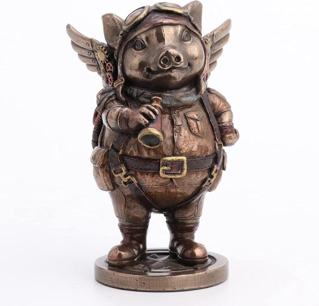 スチームパンク ・アビエイター・フライングピッグ 飛行士の豚(ブタ) フィギュア ブロンズ風仕上げ彫像 彫刻(輸入品