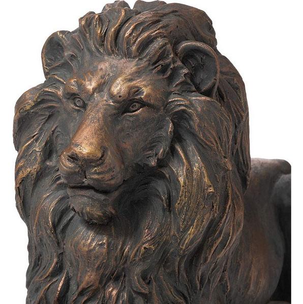 ライイング 横たわっている守護ライオン像 ブロンズ風彫像