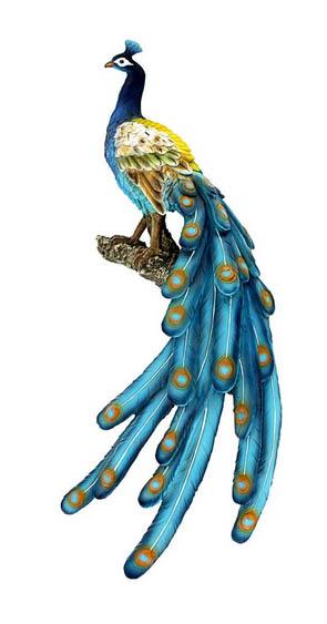 孔雀(クジャク)の壁掛け彫像 インテリア置物 鳥壁飾り