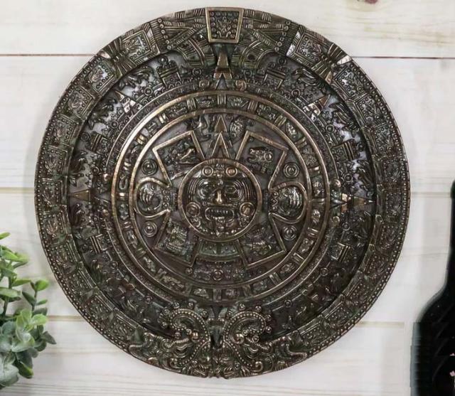 【Ebros Gift Bronzed Mexica Aztec Solar Xiuhpohualli and TonalpohualliCalendar Wall Decor Sculpture 10.75" Diameter Ancient MesoamericanCalendars Plaque Figurine】