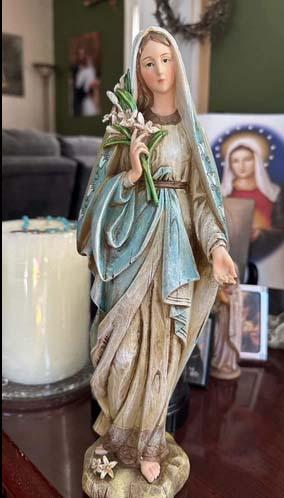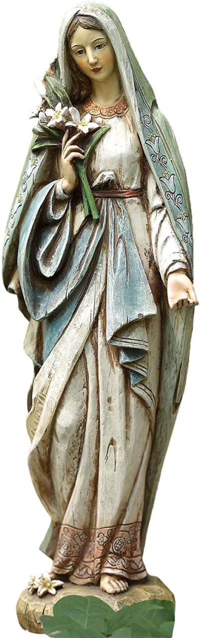 【Blessed Virgin Mary Mother Madonna Lilies Garden Statue】