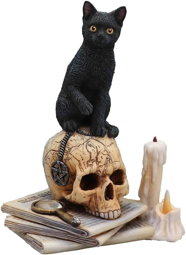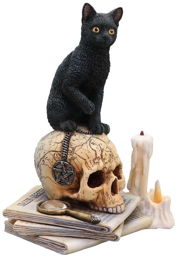 ファンタジーアーティストのリサパーカーによってデザインされた「スピリットオブセーラム」は、地図に描かれた人間の頭蓋骨の上に明るい黄色の目をした神秘的な黒猫を描いています。火のともったろうそく、五芒星のネックレス、セーラムガゼット新聞の号がシーンを完成させます。この幻想的な彫像は、驚くほど質感のあるディテールで巧みに樹脂で鋳造されており、とてもリアルに見えるので、念のために触る必要があります!像の高さは6.5インチ、長さは5インチ、幅は4.25インチです。 ゴシックアート愛好家やリサパーカーアートファンの必需品です!