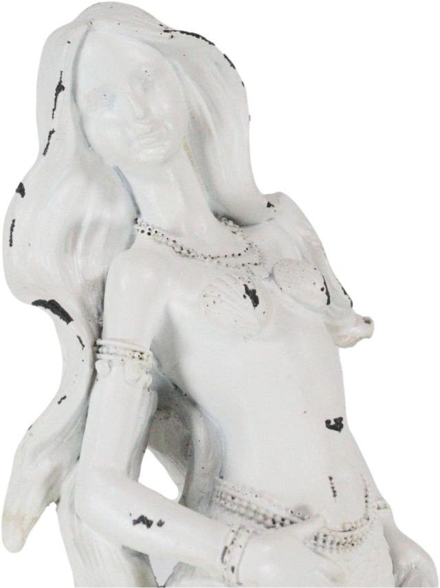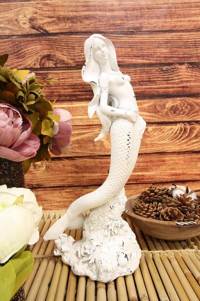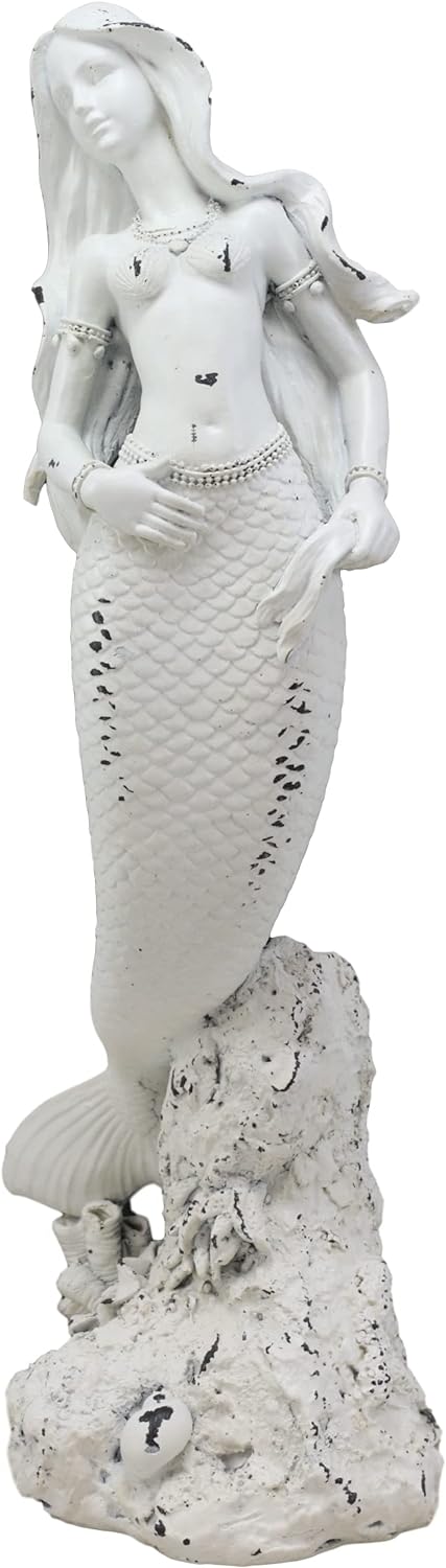 ----------------------Ebros Gift Stone Finished Rustic White Nautical Ariel Mermaid Princess Standing by Sea Coral Reef Starfish Bedrock Figurine Ocean Aquamarine Goddess Decorative Sculpture