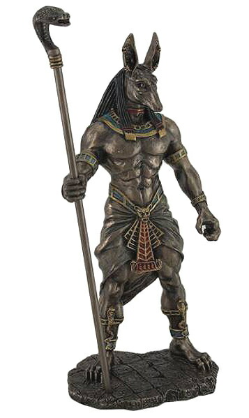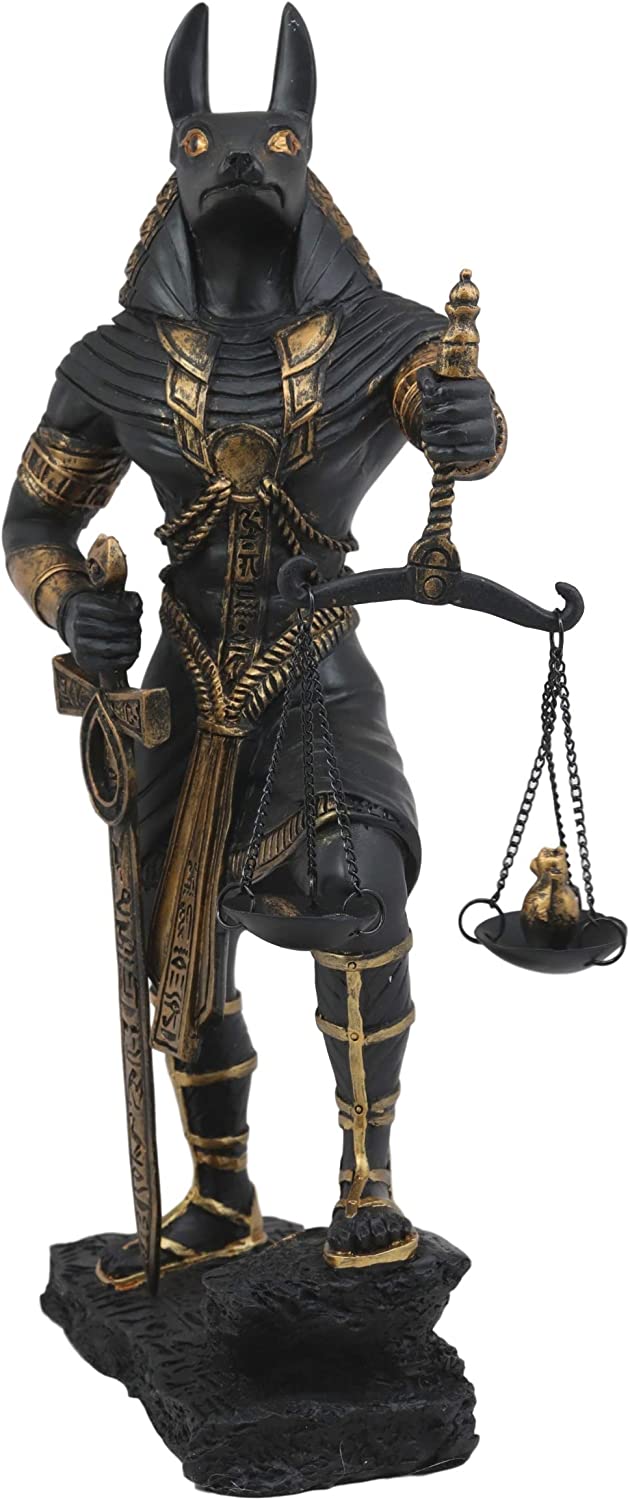 アヌビスは、エジプト神話のミイラ化と、来世に関連するジャッカルの頭を持つ神のギリシャ名です。彼の役割の 1つは、魂を死後の世界に導く神としての役割でした。 彼は「心の計量」に参加しました。魂が死の領域に入ることを、許されるかどうかが決定されました。このフィギュアは、死後の世界でアヌビスが正義の天秤を手に立ち、失われた魂を深淵へと導きます。羽より重い魂はアムミットにむさぼり食われ、羽より軽い魂は天界に昇る。 彼は神聖な象形文字の剣を持っており、彼が正義の執行者であることを示しています。像の横に置いたソーダ缶は商品に含まれません。 彫像のサイズの見通しを提供するためのものです。