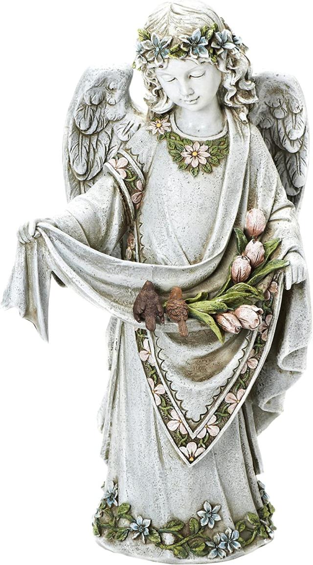 【Roman Josephs Studio Inspirational Girl Angel Wearing Floral TrimmedGown with Birds Garden Statue, 16.5-Inch】