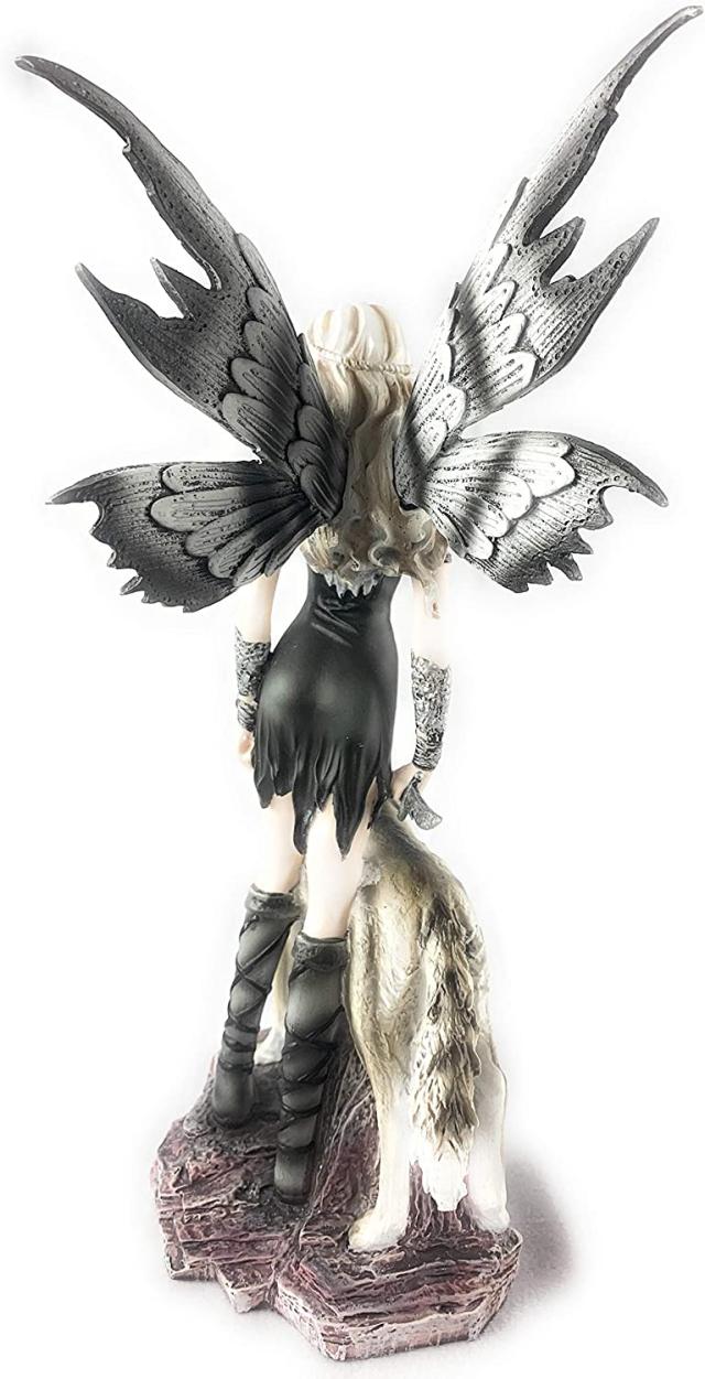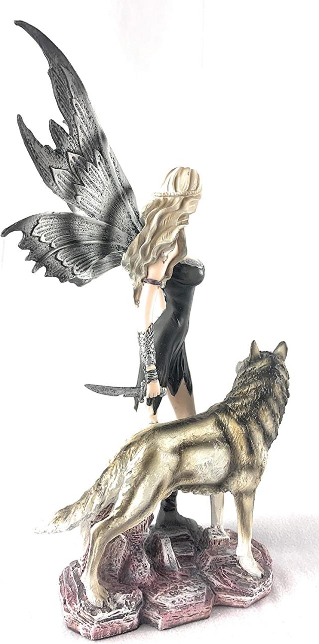 【Warrior Fairy and Snow Wolf Fantasy Collectible Statue Figurine, 11X8inches】