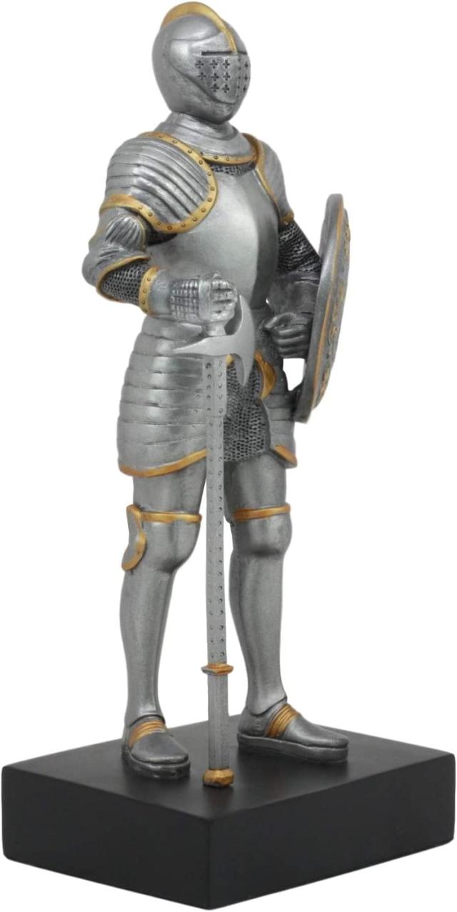 この彫像は、英国の騎士が剣を持ったフルアーマーで注目を集めています。 手描きのゴールドのアクセントで、中世の愛好家にとって素晴らしいディスプレイ彫像になります。写真の小道具は商品に含まれません。 彫像サイズの比較を検討するためのものです。
