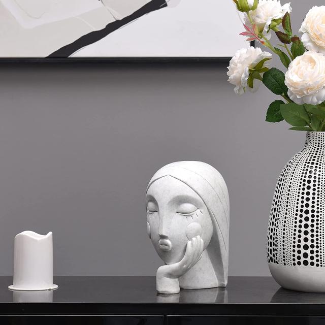 【Pointnio Modern Sculptures Home Decor, Living Room Home Decor,Woman HeadStatue Decor Ornament,Handmade Minimalist Art Sculpture TV Stand Desk OfficeBookshelf ,Entryway Shelf Decor(White)