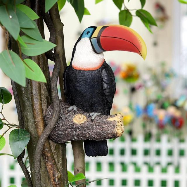 この大きなオオハシは非常に鮮やかで本物そっくりです。 非常に詳細でカラフルで魅力的なデザインなので、庭や鳥の愛好家にとっても
