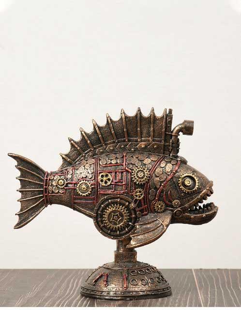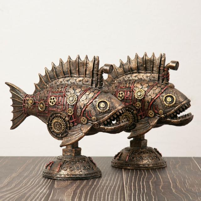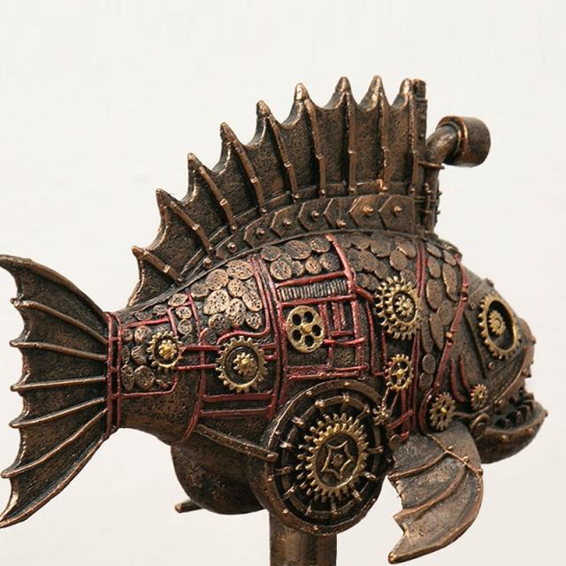 スチームパンク メカニカル・ブラック・フィッシュ彫像 魚彫刻レトロアメリカン ホ−ム装飾 リビング 本棚 アクア・フィッシュインテリア彫刻 贈り物 輸入品