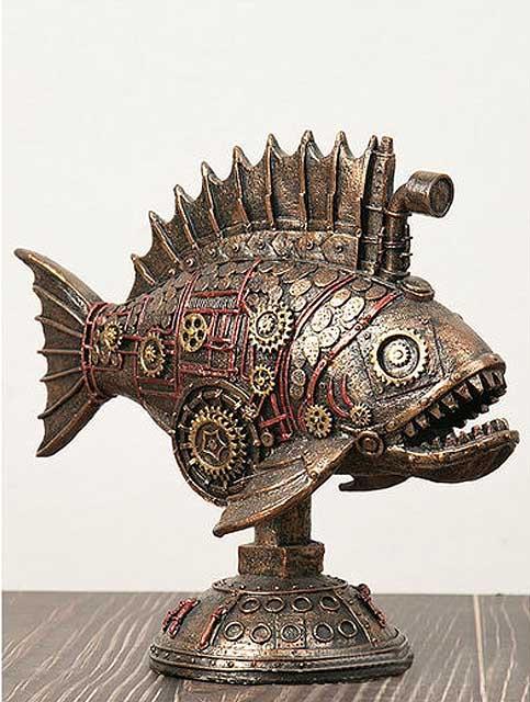 スチームパンク メカニカル・ブラック・フィッシュ彫像 レトロアメリカンクラフト