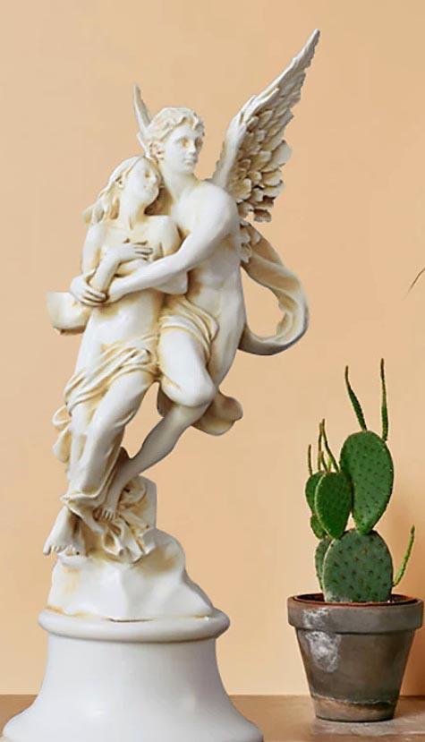 古代ギリシャ神話 エロス(クピドー)とプシュケ プシュケを抱くエロス(キューピッド)羽天使の彫像 装飾彫刻