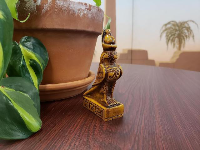 Discoveries Egyptian Imports - Egyptian God Horus Statue - Antique Gold Mini - 4" - Made in Egypt