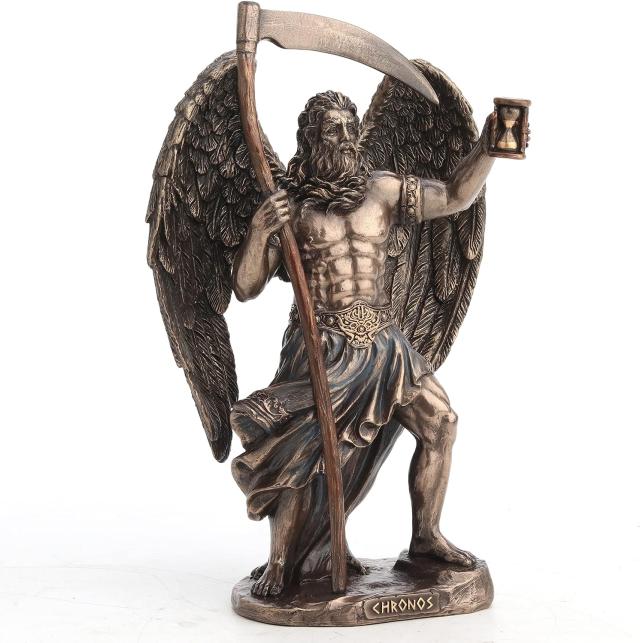 クロノスは古代ギリシャの時間の神で、ひげと翼を持った姿で描かれることが多いです。彼は年代順の時間の概念を表しており、時間そのものを