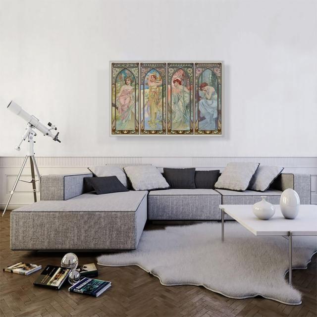 ARTCANVAS製 キャンバス アート プリント アルフォンス ミュシャ作 四つの時の流れ サイズ;101.6cm×66cm (深さ 1.9cm)