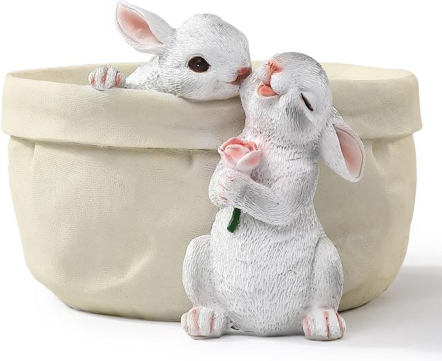 ウサギ フラワーポット 多肉植物プランターガーデンポット 装飾フラワーポット動物の形をしたプランターポット アートデコレーション(排水穴付きの花)置物贈り物 輸入品