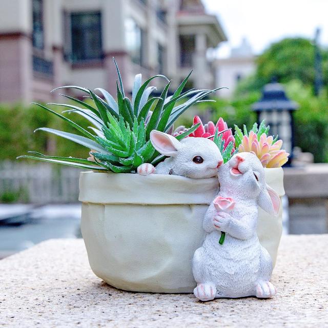 ウサギ フラワーポット 多肉植物プランターガーデンポット 装飾フラワーポット 動物の形をしたプランターポット アートデコレーション(排水穴付きの花)置物