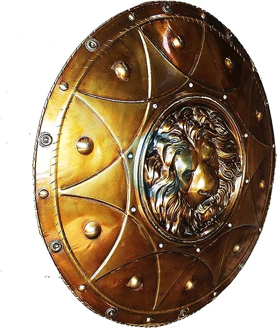 RYNASS Antique Troy Trojan War Shield Ancient Greek Shield Handcrafted Metal Crafts for Knight Soldier Warrior Costume Battle Play Halloween Cosplay LARP Home Office Bar Lobby Wall Decoration Wall Decor Hub