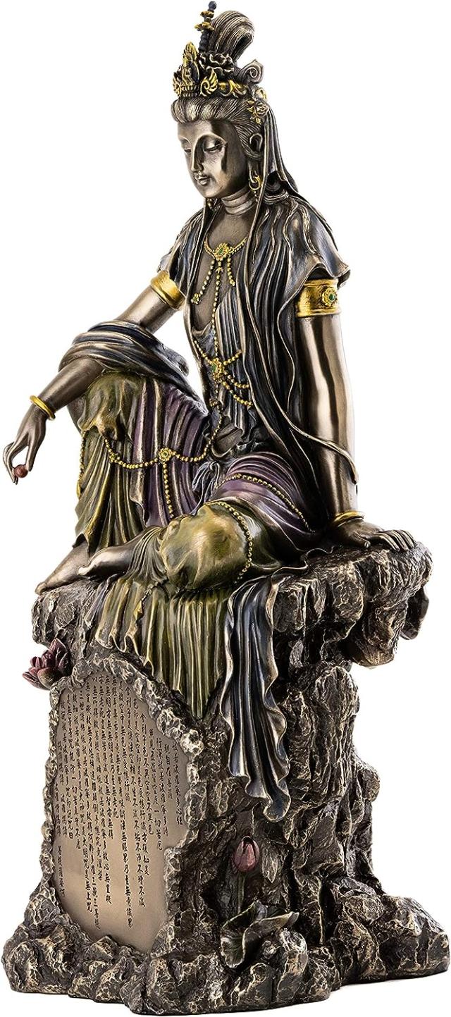 水月観音菩薩像 慈悲 慈愛 愛の女神彫像 高さ 約40cm ブロンズ風仕上げ 仏像彫刻書斎 コレクション 寺院 ギフト 贈り物 輸入品