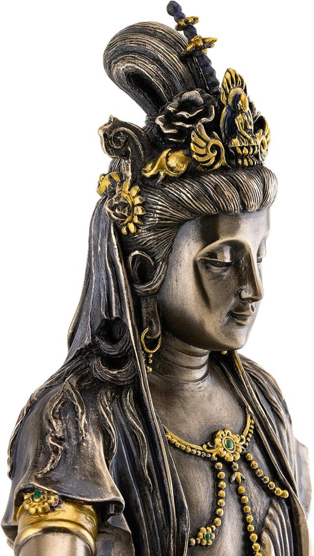 Top Collection Water and Moon Quan-Yin Bodhisattva Statue - Kwan Yin TheGoddess of Mercy, Compassion, and Love Sculpture in Premium Cold Cast Bronze- 16-Inch Collectible Buddhist Figurine
