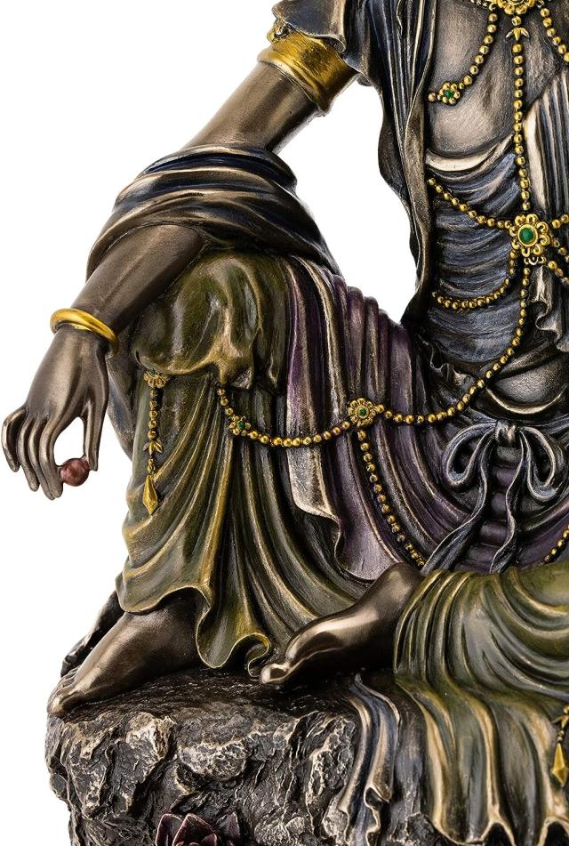水月観音菩薩像 慈悲 慈愛 愛の女神彫像 高さ 約40cm ブロンズ風仕上げ 仏像彫刻 書斎 コレクション 寺院 贈り物 輸入品s