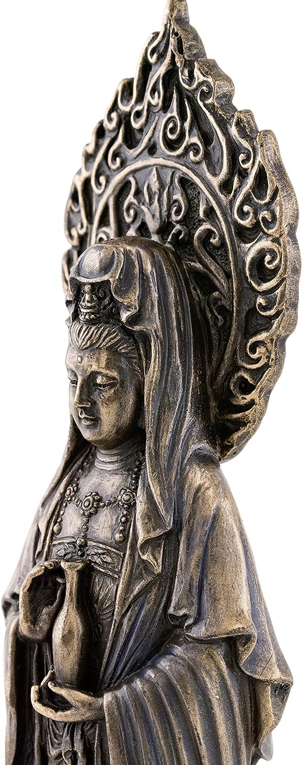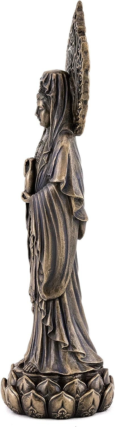 Top Collection Meditating Guan Yin Statue Standing on Lotus Pedestal- Kwan Yin Goddess of Mercy and Compassion Sculpture in Premium Cold Cast Bronze - 7.25-Inch Collectible Avalokiteshvara Figurine