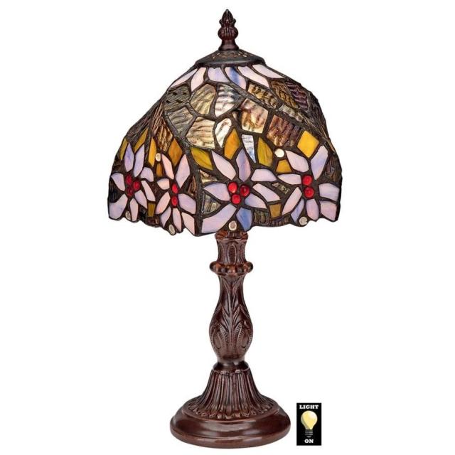 カメレオンのような、クラシックなティファニー・スタイルのステンドグラステーブルランプは、アメリカのハナミズキであるフロリダ花水木の色合いで輝きます。200 点以上の鮮やかな色合いの本格的なアート ガラスが、組み合わさって、立体的なステンドグラスのアート作品になっています。フランスのブロンズ風仕上げの高品質のデザイナーレジンベースの台座の上に高さ1フィート以上の高さがある、この職人のオリジナル作品は、あなた自身や恋人への時代を超越した贈り物になります!