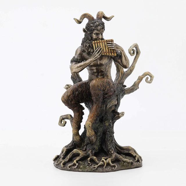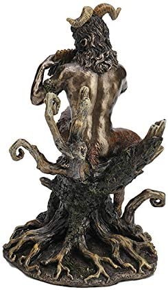 彼は牧神と同じように、ヤギの後肢、脚、角を持っています。 彼の故郷はアルカディアにあり、野原、木立、樹木が茂った谷の神として認められています。パンは豊饒と春の季節に関連しています。 パンパイプで森の木に座っているパンの彫像は、驚くほど詳細で、ブロンズ風の外観と輝きを与えるためにメタリックブロンズペイントで仕上げられています。コールドキャストレジン製で、高さ9.25インチ、幅7.75インチ、奥行き5.75インチです。この彫像は、デスクテーブル、壁の棚、本棚によく似合います。 家族や友人への素晴らしい贈り物になります。