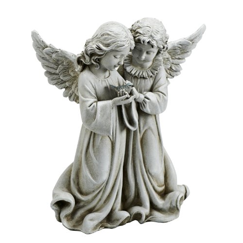 【Joseph's Studio by Roman Inc., Angels with Bird Garden, Garden Collection,Religious Statue, Holy Family, Memorial, Angel, Patron Saint, Garden Decor(12x10x6)】