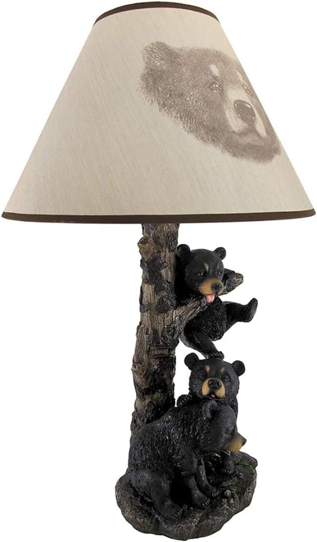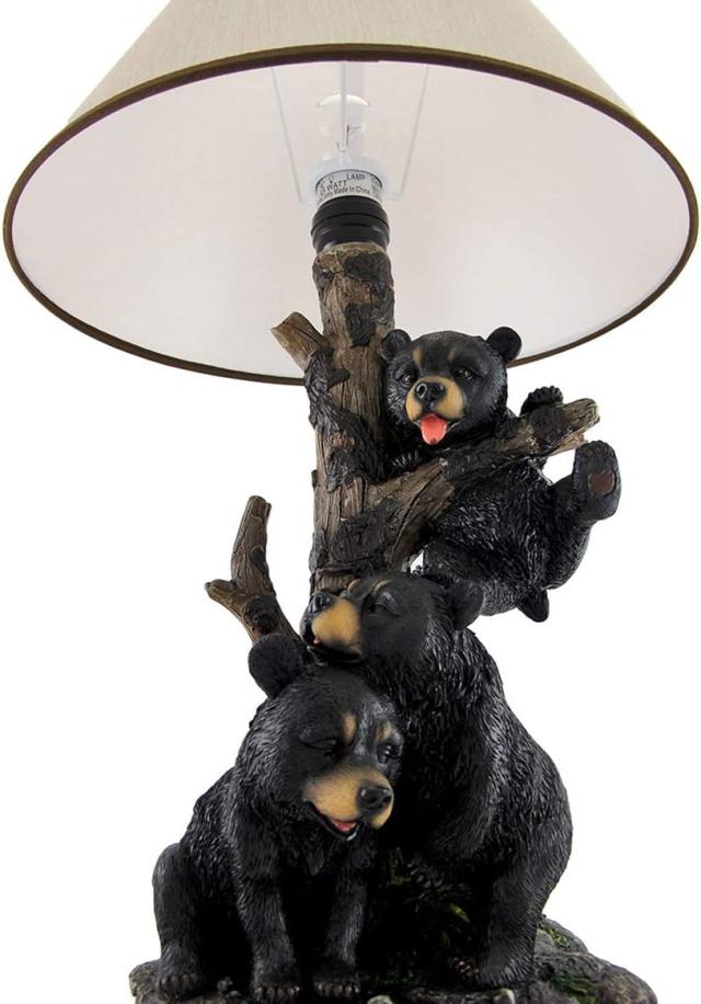 木に登るブラック・デア彫刻台座 黒いくまがプリントされたシェード付きテーブル・ランプ彫像(輸入品