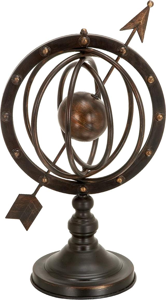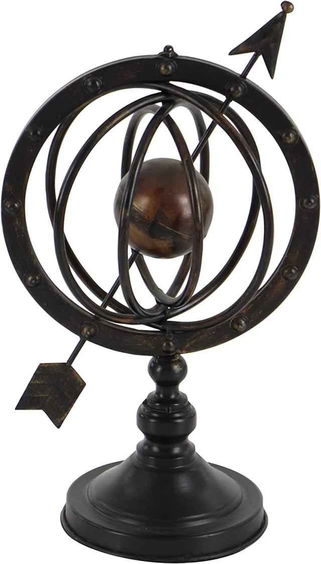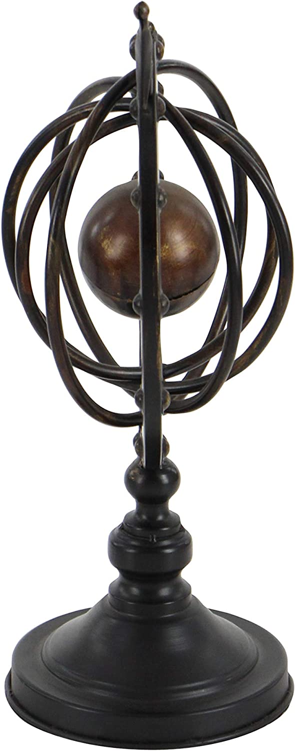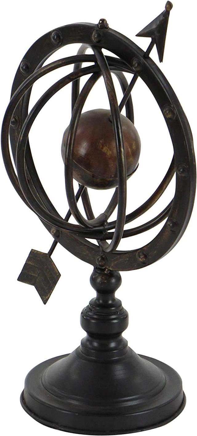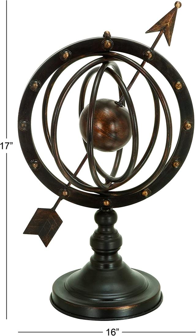 【Deco 79 Glass Compass Armillary Globe, 10" x 7" x 17",Brown