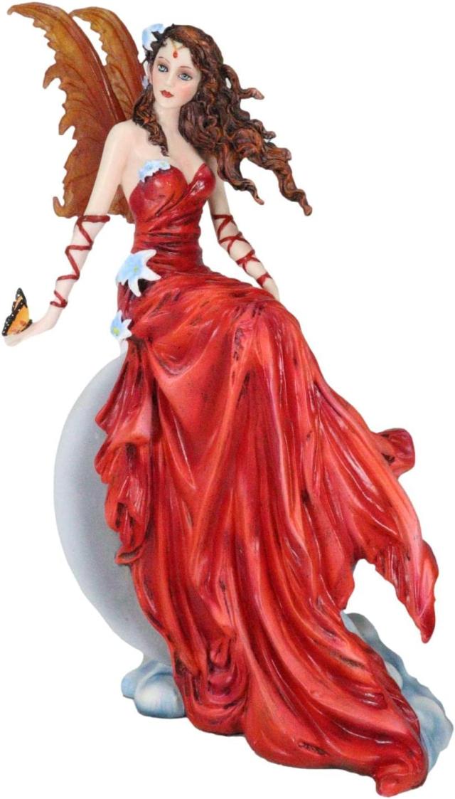 【Ebros Gift Large Celestial Moonlit Romance Crimson Lilly Wedding Fairyin Red Gown Statue 12" Tall by Nene Thomas Decorative Mythical FantasyFigurine Collectible】