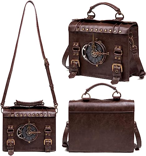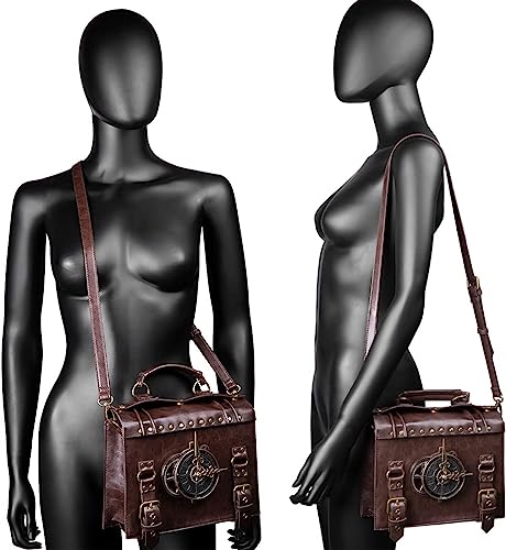 Messenger Bag Leather Retro Briefcase Steampunk Crossbody Shoulder Purse Satchel for Women Lolita Gothic Costume Accessory