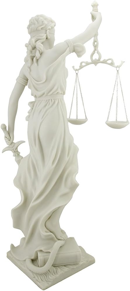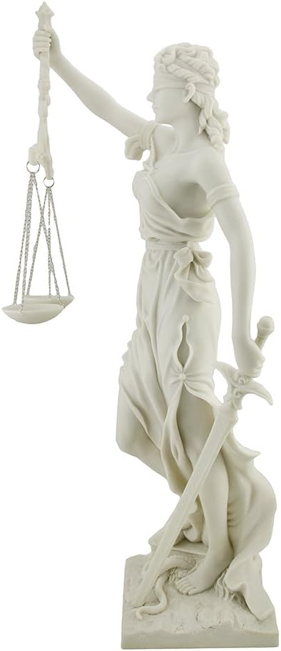 Top Collection 12.5 Inch Lady Justice Statue Sculpture. Premium Resin - White Marble Finish.