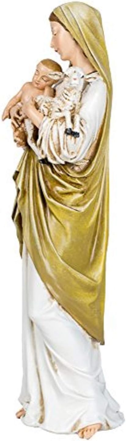 【子羊と聖母子(聖母マリアとキリスト)彫像 彫刻/高さ約30cm/ カトリック教会 祭壇 聖霊 聖書 十字架 プレゼント 贈り物(輸入品】