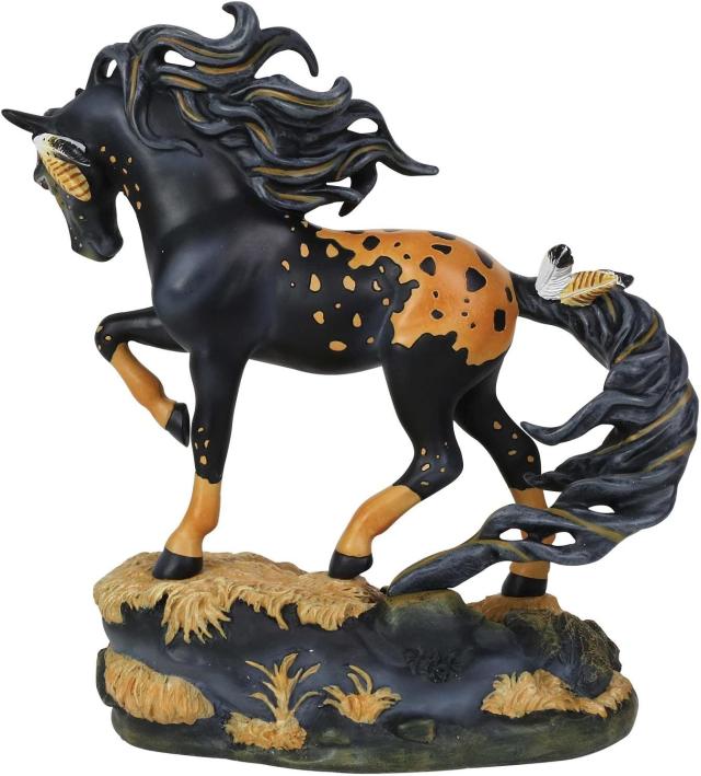 慎重に彫刻されたフィギュアを通して、ペイントされたポニーは、馬の美しさとアメリカ文化の素晴らしさを祝っています。イーグルスピリットの寓話は、魔法の力を持つワシの下で森で生まれた子馬について、語っています。ワシは、馬の背中に黄金色の羽を追加することで、その威厳の一部を共有しました。神秘的なパワーを持つように、このフィギュアは信じられないことを、信じることを比喩しています。デザインはオリジナルのアートワークとして始まり、それぞれがユニークな才能のあるアーティストによって作成されています。
