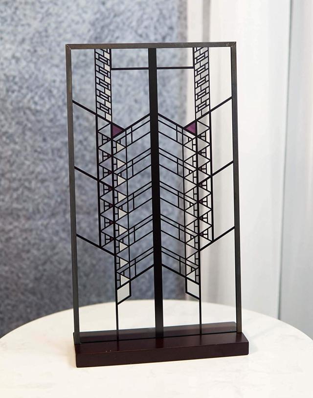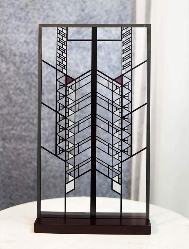 【フランク・ロイド・ライト作 ホーリーホック・ハウス・デザイン ステンド・グラス・アート・サンキャッチャー メタル・フレーム ハンギング・ウォール デコレーション または デスクトップ装飾置物 彫刻 プレゼント 贈り物(輸入品)】