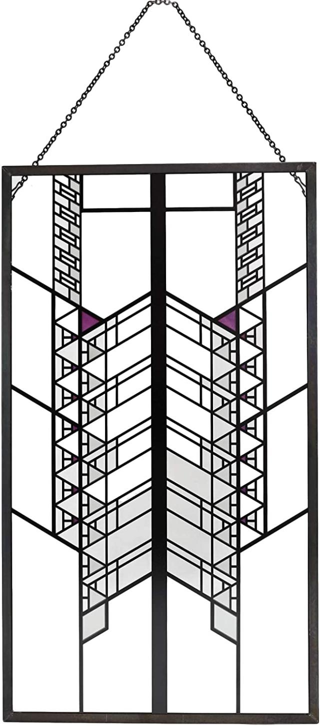 【Ebros Frank Lloyd Wright Hollyhock House Design Stained Glass Art SuncatcherMetal Framed Hanging Wall Decor Or Desktop Plaque Home or Office DecorativeMasterpiece 14" by 7.75"】