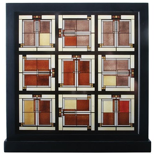 フランク ロイド ライトのホーリーホック・ハウス・ステンドグラスは、1923 年に完成したライトの最初のロサンゼルス・建築プロジェクトの1つである、ホーリーホック・ハウスから採用されました。 幾何学模様は、家の隣接するリビング・ルームの、4つのサイド・ライトでライトが使用したデザインの詳細を表すために使用されています。