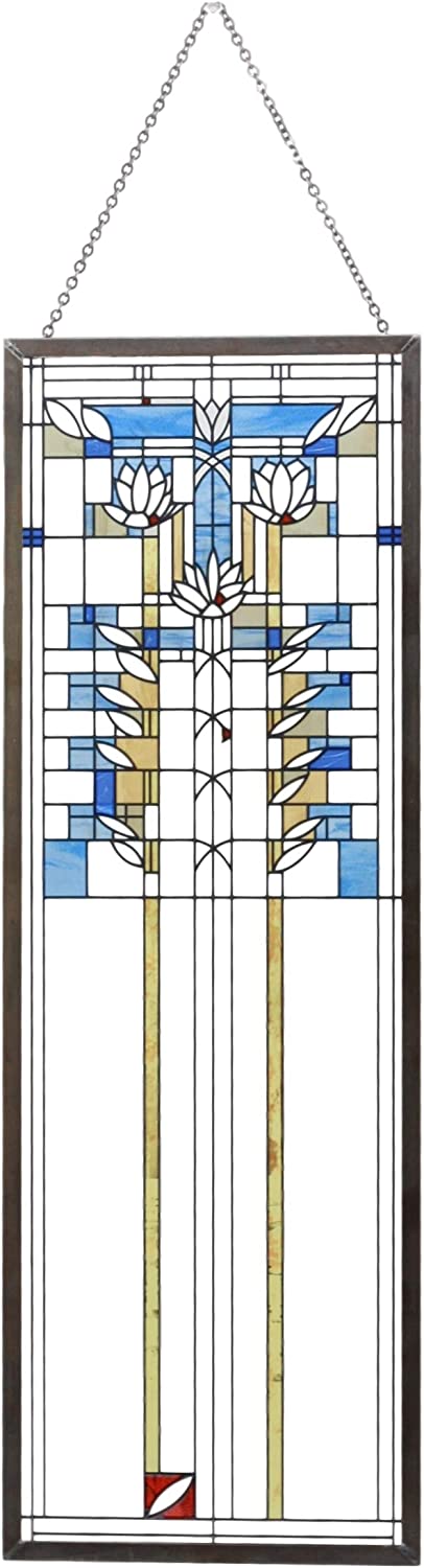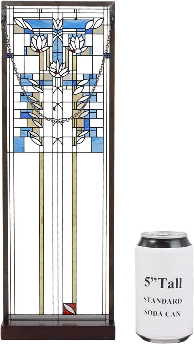 セール!即納!【フランク・ロイド・ライト作「睡蓮 スイレン」ステンドグラス・アート メタルフレーム ハンギング ウォール デコレーション または デスクトップ装飾置物 彫刻 高さ 約38.1cm×幅 約12.7cmプレゼント贈り物(輸入品)】