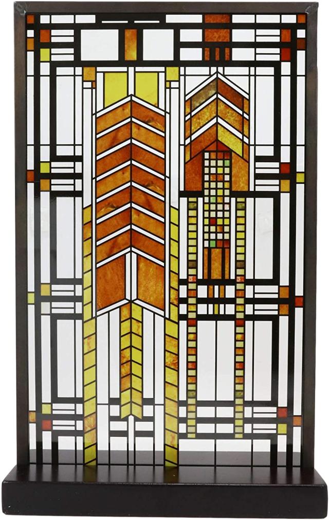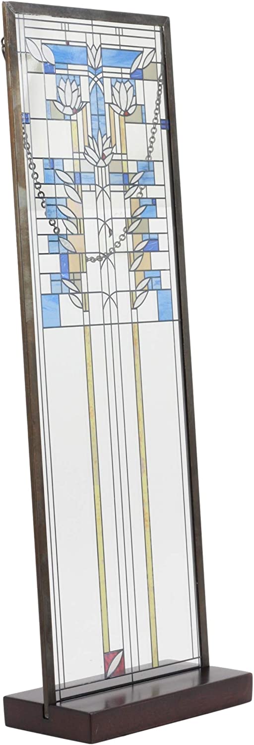 【Ebros Frank Lloyd Wright Waterlilies Stained Glass Art Metal Framed HangingWall Decor Or Desktop Plaque 15"H X 5"W】