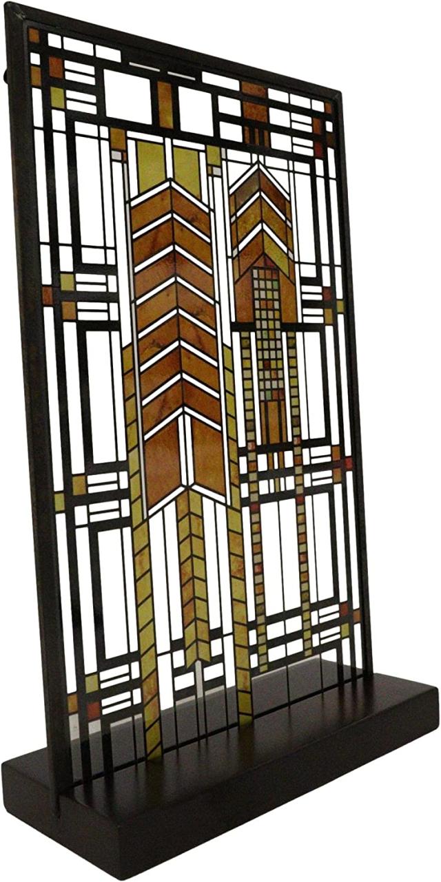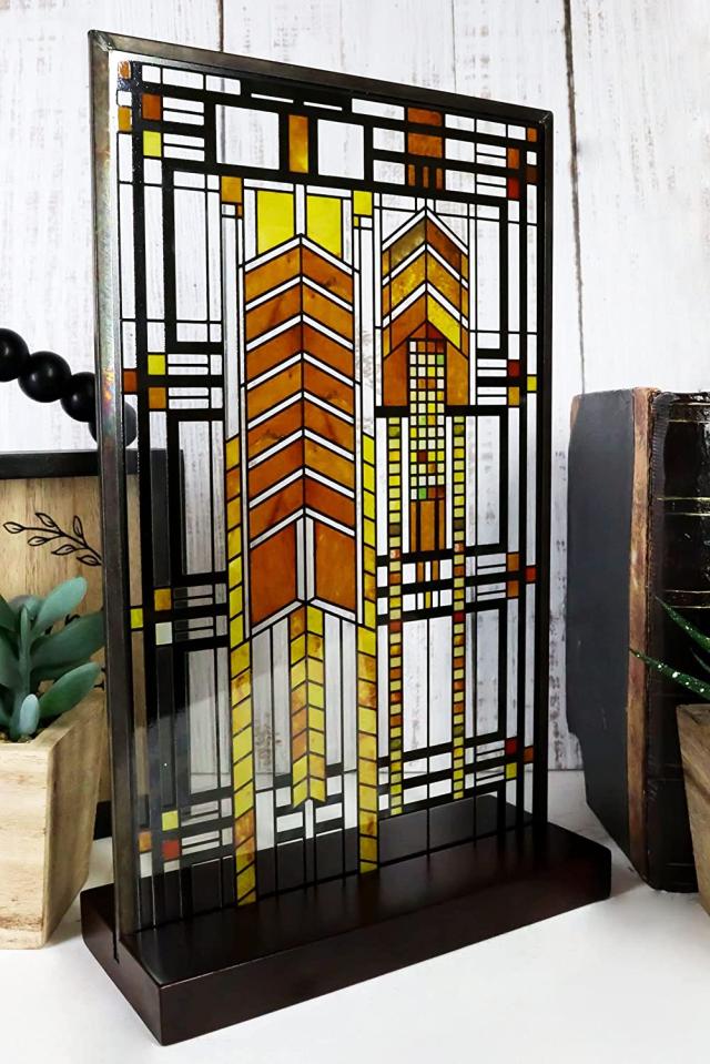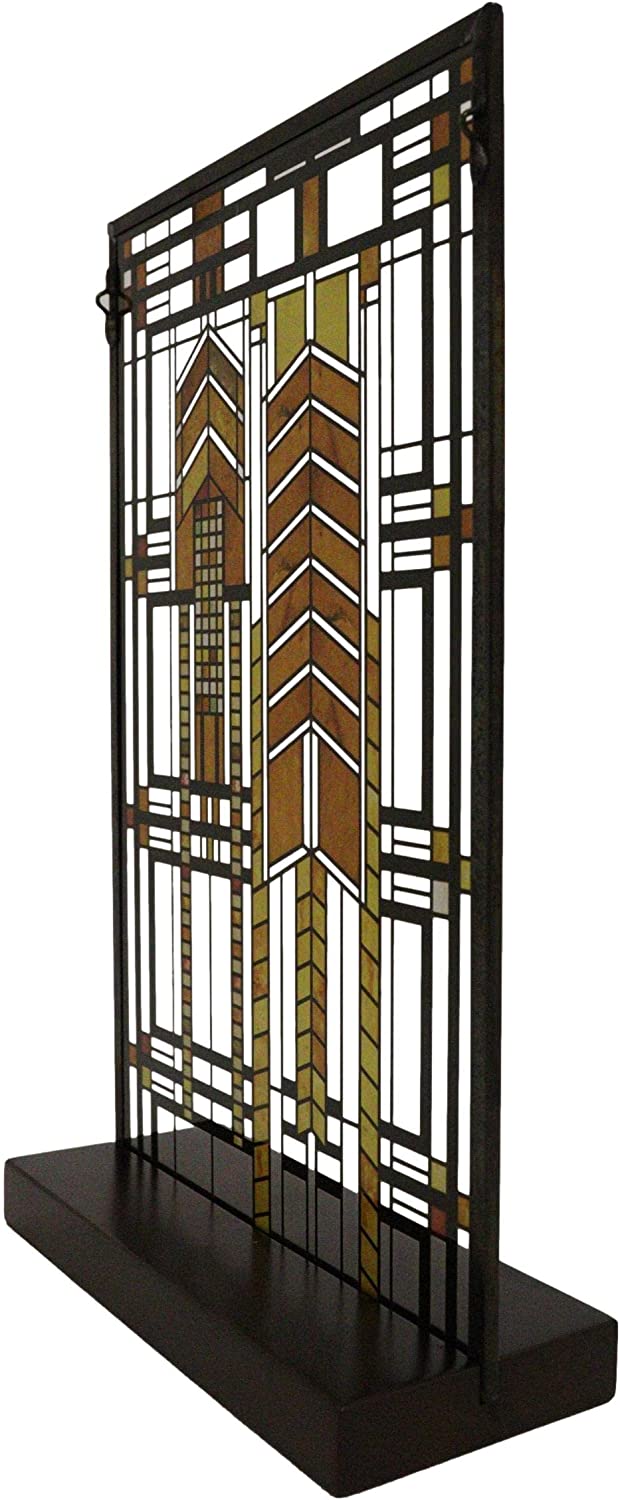 【Ebros Frank Lloyd Wright Autumn Sumac Stained Glass Art Metal FramedHanging Wall Decor Or Desktop Plaque Susan Lawrence Dana House Window ArchitecturalHome or Office Decorative Accent 10" by 6.5"】