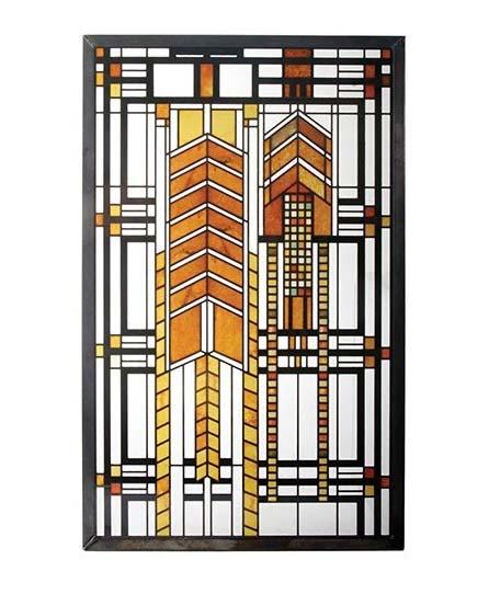 フランク ロイド ライト秋のウルシ・ステンドグラスは、イリノイ州スプリングフィールドにあるスーザン・ローレンス・ダナハウスの窓から採用されたもので、ライト氏が繰り返しデザインした原生の草原のウルシ植物を抽象的な形で表現しています。 ガラスに映える深みのある琥珀色と緑色が、秋を感じさせます。 元の窓は、家のレセプション・ホールにある一対の窓の1つでした。 このステンドグラス・パネルは、フランク ロイド ライト財団と共同で開発されました。