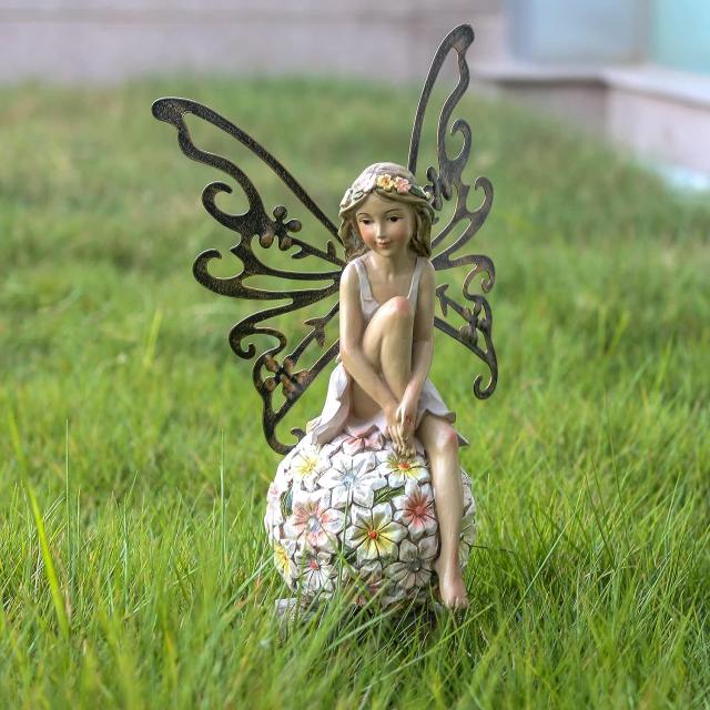 この珠を持った、花の妖精フラワーフェアリーは、あなたの生活空間に素敵なアクセントを加え、庭に、太陽の彫像の装飾品によって、素敵な影響を加えるのに最適です。